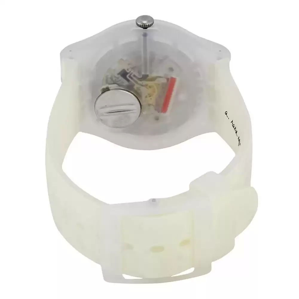 این ساعت از یک موتور کوارتز برخوردار است.جنس قاب و بند این مدل، پلاستکی با درجه کیفیت بسیار بالایی میباشد. ساعتمچی سواچ مدل SWATCH SUOW119 با طراحی بی نظیر و استفاده از رنگ سفید در قاب و بند، یکپارچگی بسیار زیبایی را به ساعت بخشیده است. همچنین با افزودن رنگ پس زمینه سفید با طرح برگ، جذابیت ساعت را دو چندان کرده است. این مدل ضد آب با درجه 3atm میباشد. ساعتمچی سواچ مدل SWATCH SUOW119 دارای قطر صفحه 41 میلیمتری است و برای مچ های زنانه و مردانه کاملا مناسب میباشد. همچنین این ساعت سوئیسی، با استایل روزمره و اسپرت میباشد و گالری عقربه، این ساعت منحصر به فرد را به مشتریان خاص خود پیشنهاد میکند.