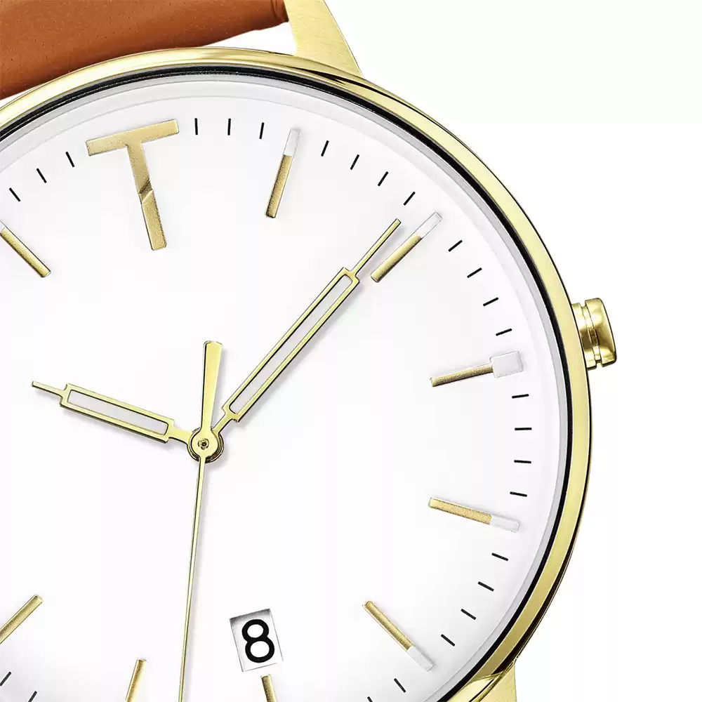 تیلور با طراحی قاب طلایی و بند قهوهای، باعث شده این ساعت از مورد پسند هر سلیقهای قرار گیرد. همچنین صفحه سفید رنگ و عقربههای شبنما، زیبایی بصری این مدل را دوچندان کرده است. این ساعتمچی زنانه تیلور دارای تقویم نیز میباشد و روزهای ماه را برای شما به نمایش میگذارد.