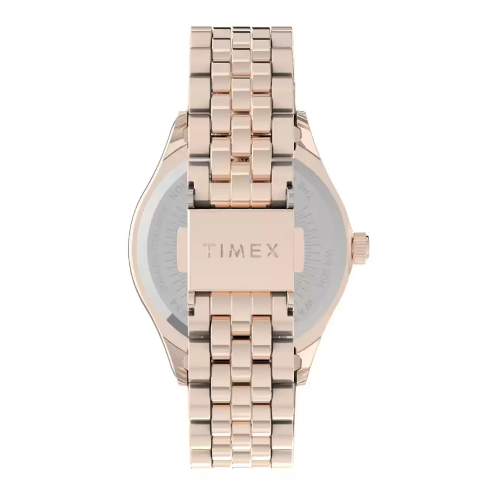 برند تایمکس با طراحی قاب رزگلد و بند به رنگ رزگلد، جلوه‌ی بسیار زیبایی را به این مدل بخشیده است. همچنین صفحه‌ای به رنگ رزگلد باعث شده که این ساعت از نظر بانوان، بسیار جذاب به نظر برسد. استایل ساعت‌مچی زنانه تایمکس مدل TW2T86800 روزمره و مجلسی است و گزینه ی مناسبی برای خانم‌ها به شمار می‌رود. قفل این ساعت نیز از نوع کلیپسی ضامن‌دار می‌باشد که قابلیت تغییر سایز دارد.