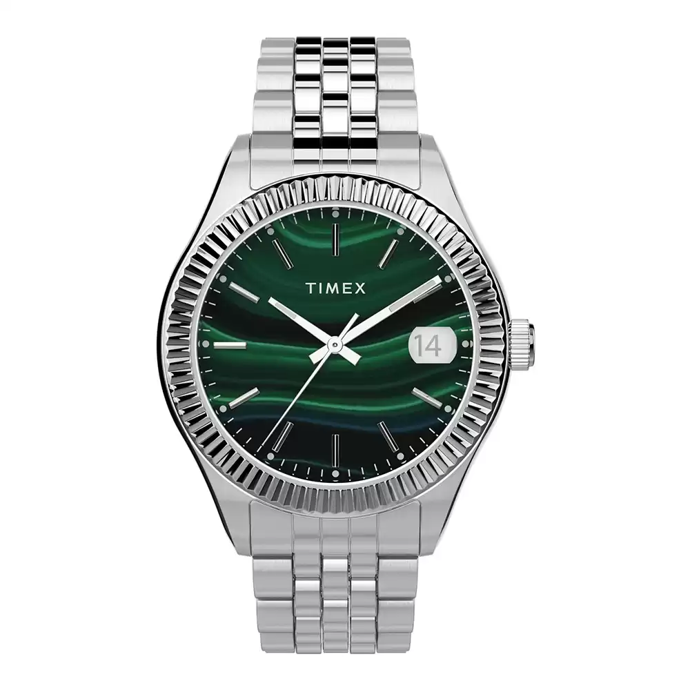 برند تایمکس با طراحی قاب نقرهای و بند به رنگ نقرهای، جلوهی بسیار زیبایی را به این مدل بخشیده است. همچنین صفحهای به رنگ سبز باعث شده که این ساعت از نظر بانوان، بسیار جذاب به نظر برسد. استایل ساعتمچی زنانه تایمکس مدل TW2T87200 روزمره و مجلسی است و گزینه ی مناسبی برای خانمها به شمار میرود. قفل این ساعت نیز از نوع کلیپسی ضامندار میباشد که قابلیت تغییر سایز دارد.