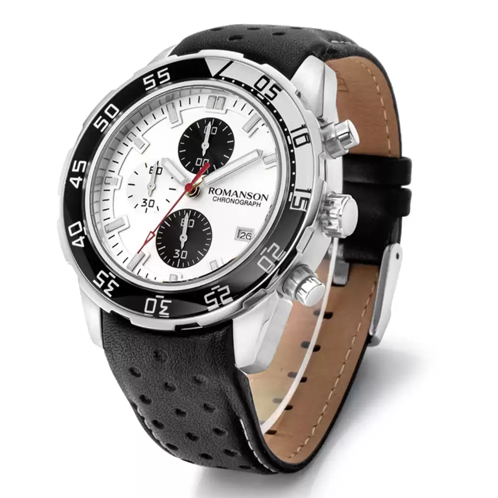 ساعتمچی مردانه رومانسون مدل TL4245HM1WA12W دارای استایل اسپرت میباشد که برای افرادی که سخت پسند هستند گزینهی بسیار خوبی است. قاب این ساعت به فرم گرد و از رنگ مشکی-نقرهای تشکیل شده که زیبایی وصف ناپذیری را برای ساعت به وجود آورده است. همچنین با اضافه کردن رنگ سفید به صفحه و همینطور بند مشکی رنگ، زیبایی این ساعت را دوچندان کرده است. ساعتمچی مردانه رومانسون مدل TL4245HM1WA12W سه عقربهای و دارای قفل سگکی ساده است که قابلیت تغییر سایز برای هر فردی را امکانپذیر میکند.