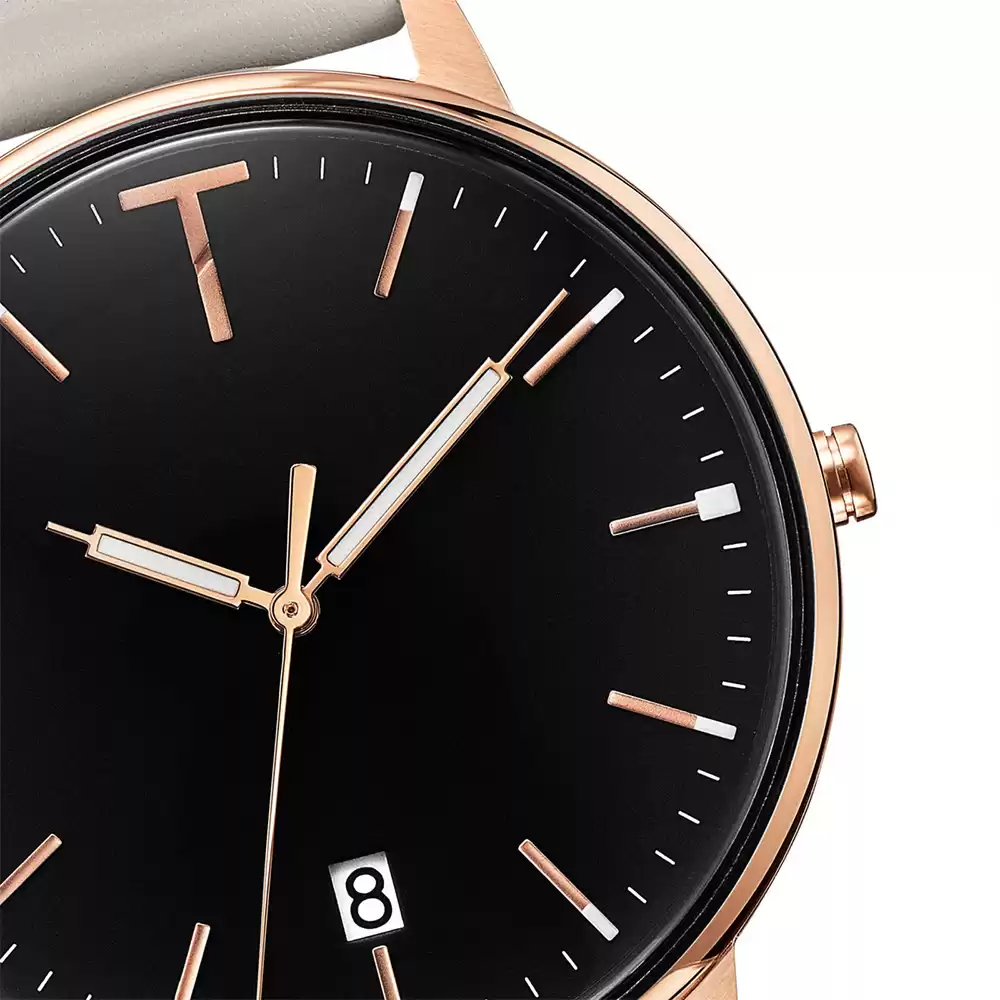تیلور با طراحی قاب رزگلد و بند خاکستری، باعث شده این ساعت از مورد پسند هر سلیقهای قرار گیرد. همچنین صفحه مشکی رنگ و عقربههای شبنما، زیبایی بصری این مدل را دوچندان کرده است. این ساعتمچی زنانه تیلور دارای تقویم نیز میباشد و روزهای ماه را برای شما به نمایش میگذارد.